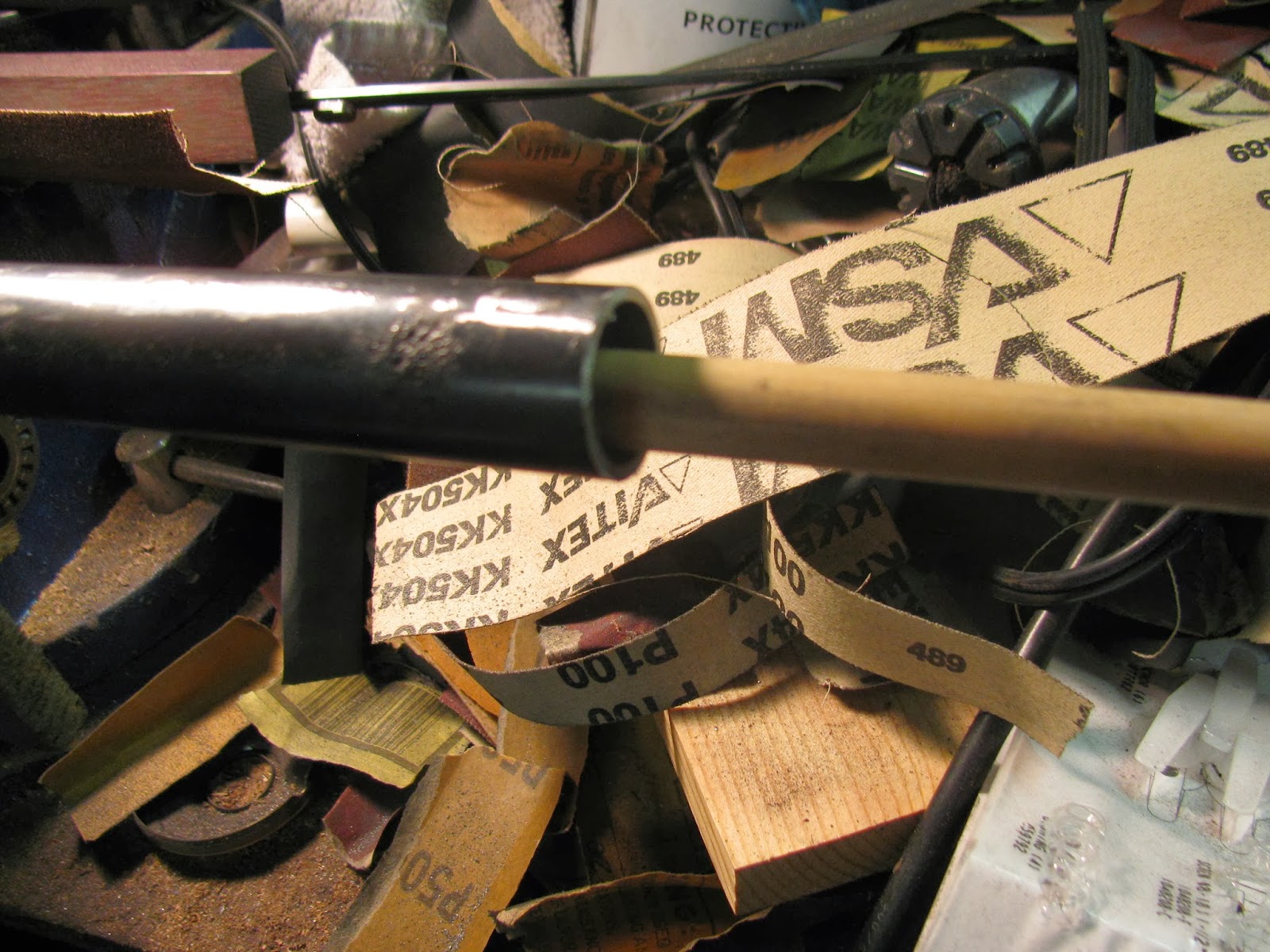 Here it is after sanding/filing. We will now try sandblasting the barrel and magazine tube with heavy grit abrasive.