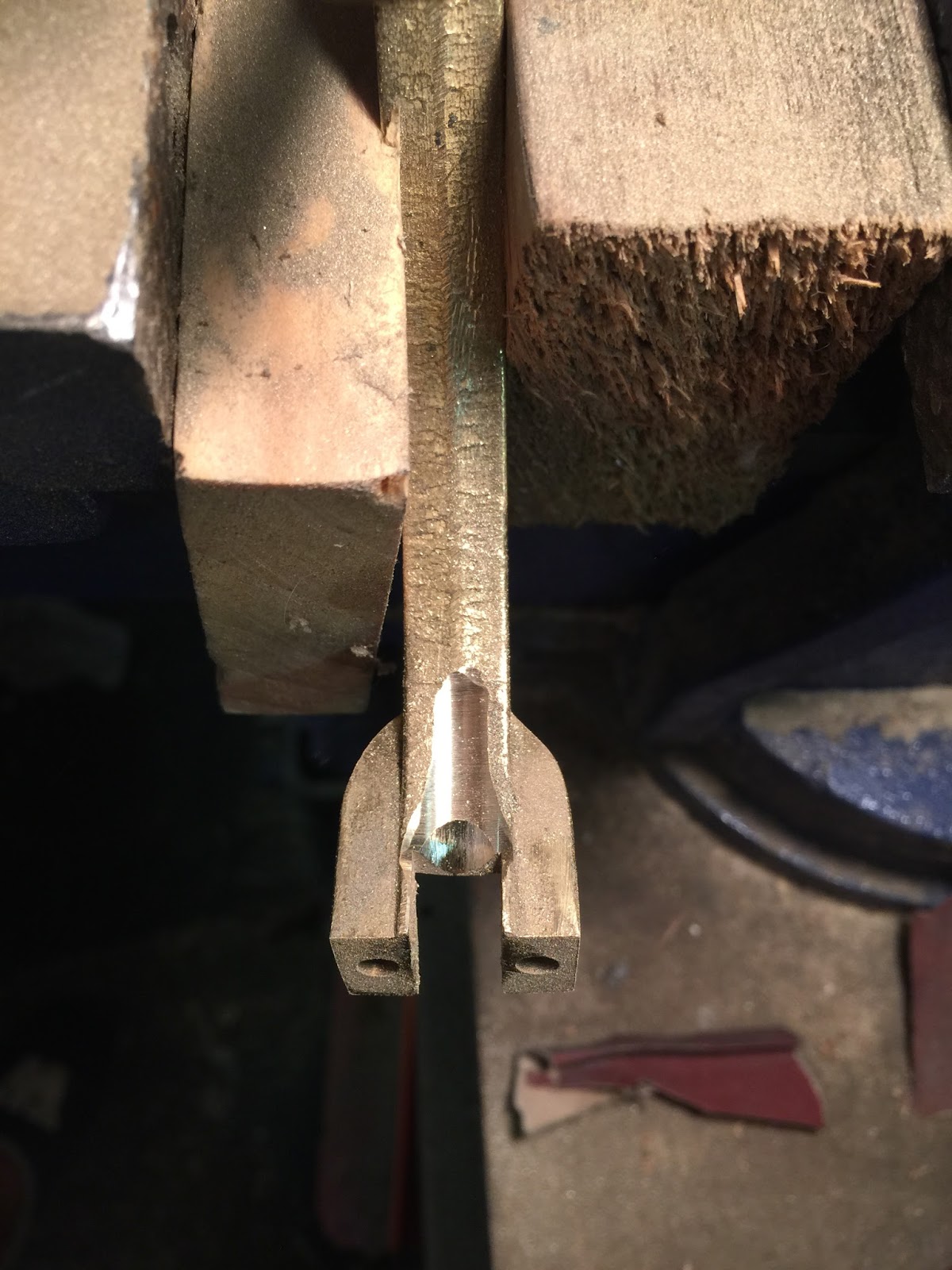 The next step was to identify the location and angle of the main strut boss and find some sturdy metal in which to construct it from.