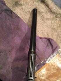 Before going further I needed to get the old barrel off and attach the replacement. You can see in the picture below the jaw marks from my bench vise, the barrel just spins in the vice and will not unscrew.