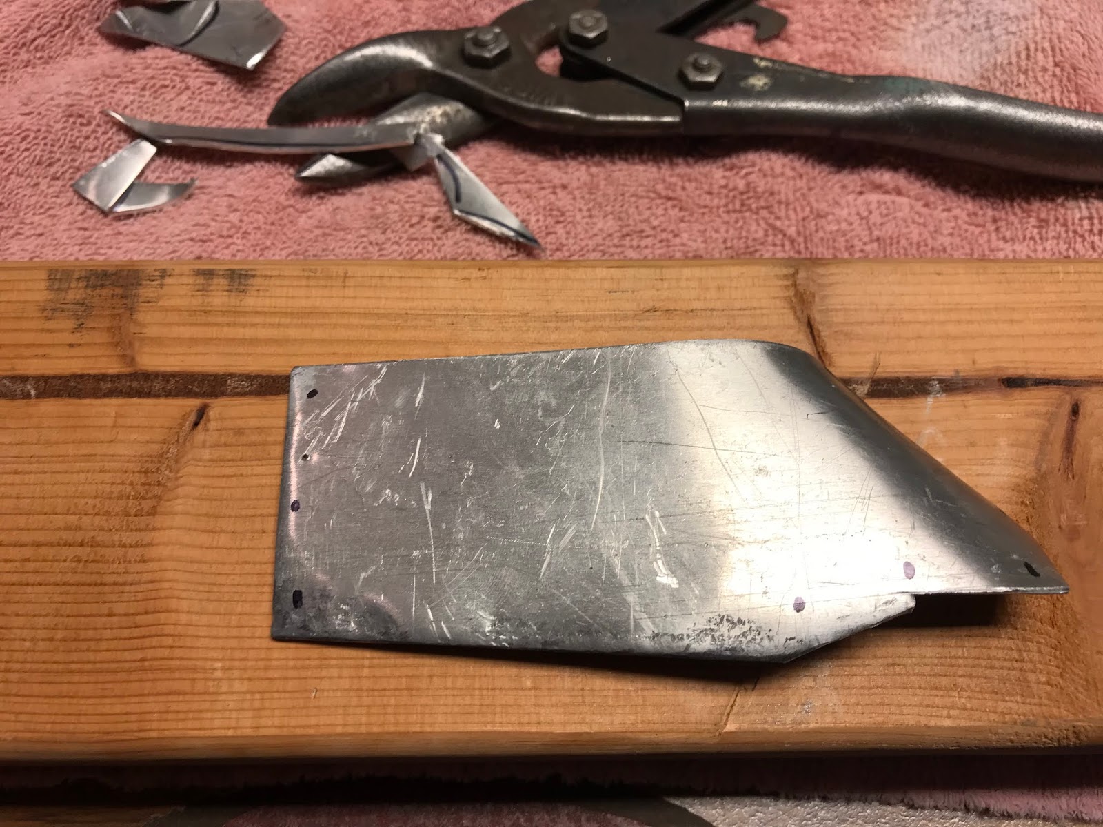 While the glue was drying I started on the aluminum reinforcement plate, using a 2x4 as a buck, I pounded, bent and cut the plate to fit
